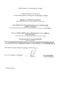 Создание ВЗТК и таможенное оформление на Ж/Д станции Локоть.